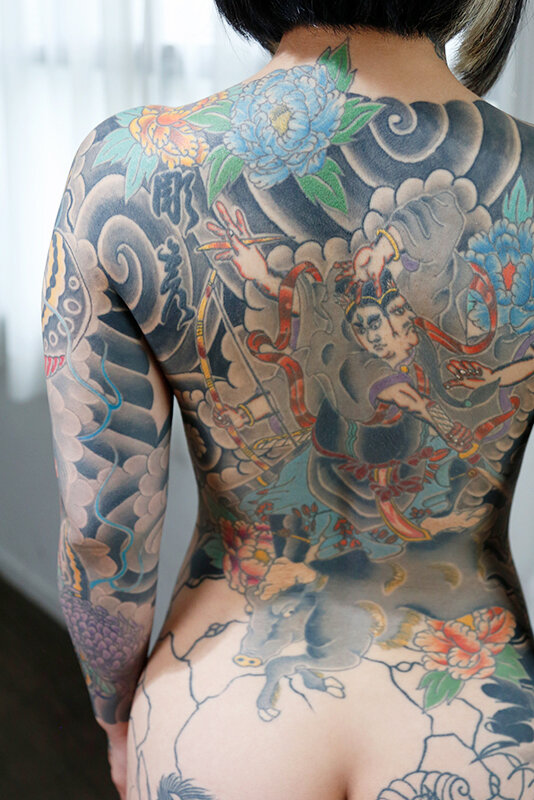 圧倒的破壊力!全身に隙間なく描かれた多彩な和彫りの数々…クールでミステリアスな雰囲気のある彼女がAVデビューします!見た目のインパクトから寄ってくる男性は全てドM、責めることを要求される事にウンザリと悩む彼女の秘めたる願望はドS男に思いっきり責められたいと告白!受けてみたかったイラマや顔射、ドS男に徹底的に調教SEXされて見た目強そうな和彫り女が従順なメスに覚醒!乱れ乱れてイキまくるという衝撃のデビュー作となった!散々イカされて気絶寸前、刺青どおり「南無阿弥陀仏」の心境なのだろうか。