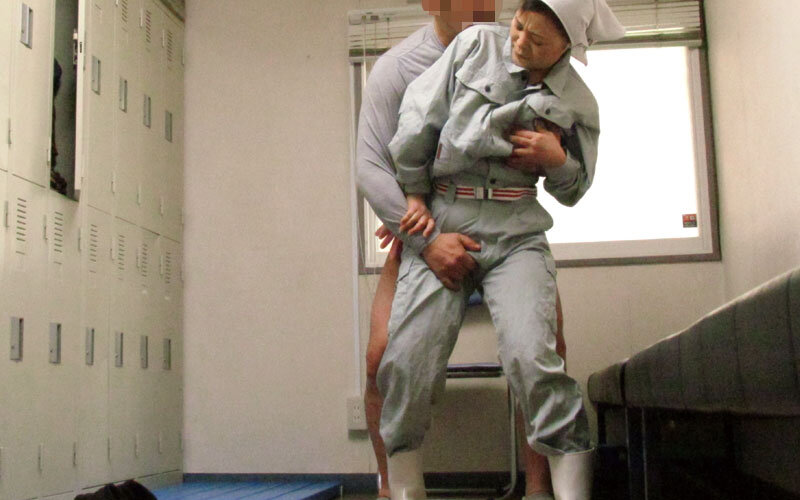 会社の掃除のおばさんを口説いてエロ交渉!肉付きの良い中年ボディが作業着を着て床掃除をするとパンツの線が透けて熟れ尻がたまらなくエロい。会話で距離を縮めてさりげなくボディタッチをすると、悩ましい吐息を吐くので、服の中に手を入れておっぱい、局部をまさぐると股間がぴちゃぴちゃと濡れ始める。