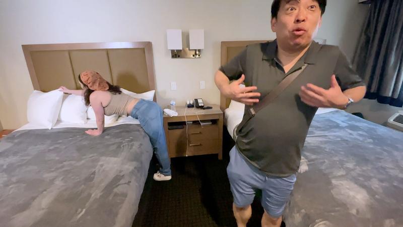 ロスナンパシリーズにレジェンド男優吉村卓をハイカラチームに迎え二度目のロサンゼルスに! ハリウッド三郎と吉村卓の息の合ったコンビネーションでロスの美女たちをハメまくる旅!in summer! ロスのウッドランドヒルズに宿泊している吉村卓とハイカラクルー。 物価も高いのでそんな高いホテルではないけど、 ホテルの周りにはスーパーや飲食店もあって立地含めいいところです。 ただしセキュリティー面はゆるゆるです。笑 人の出入りは自由ですし、LAなのでみなさんそこら中で●●●吸っててニコニコしてます。 このホテルの良いところのもう一つはハウスキーパーさんが毎日部屋を綺麗にしてくれるんですよ。 ホテルでは当たり前かもしれませんが、常に誰かしらがお掃除カート引いているので、 バスタオルも頼めばいくらでもくれますし、部屋のゴミをまとめて外に出しておくと勝手に片付けてくれるんです。 ハウスキーパーさんは全員女性でみなさん気さくです。 我々も長期で滞在しているので顔見知りになってきます。 この日ホテルのプールから部屋に戻るとちょうどハウスキーパーさんが片付けしてくれているところでした。 よく見るとすごくおっぱい大きくてお尻もムチムチ。 近くにいすぎて気付かなかったけど、目もくりくりしてて顔も可愛らしい。 部屋にはいつもカメラなど機材があることに気付いている彼女ですが、 率直に我々がLAに来ている旅の目的を伝えてみた。 いつもハウスキーパーに払うチップは3ドル~5ドルですが、100ドルでフェラ交渉。 彼氏はいるみたいだけど、でもお金は必要。 最初は少し恥ずかしそうにしてたけど、服を脱がせたら天然のプルンプルンおっぱいで形も最高。 チャーミングで小柄な巨乳ちゃんだけど、セックスになると別人格でハードファック好きのドMでした。