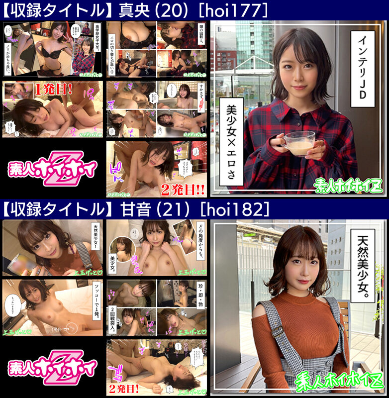 ナチュラルな可愛さと癒し感で惹きつけ、全人類を笑顔にする”清楚” 欲望に素直で快感を追い求め、淫らに狂い咲き、魂を誘惑する”淫乱” 多くの漢たちを魅了してきた 清楚 & 淫乱 ※ただし美少女限定 …では、その両方兼ね備えた 「最強の二刀流素人娘」は誰なのか? ━ 【厳選】誰もが認める一流の美少女10名 ━ hoi152;雨美→顔面国宝(G乳)に大量顔射! hoi160;うるちゃん→おまた激濡れ!アイドル顔負けフェイス! hoi161;カノン→剛毛美少女は肉食!巨チン丸呑み! hoi172;美鈴→発情しまくる京娘!雑魚マ♀コ確定! hoi177;真央→インテリ美少女は無限性欲!終始痴女! hoi191;芽流→おっとりさん、挿入するとキャラ変! hoi182;甘音→酒とチ♂コで「飛ぶ」美少女! hoi194;かずみ→開発済み?!ご奉仕テクが最強なG乳! hoi195;まいまい→圧倒的美少女とエロ漫画みたいなSEXしてみた! hoi206;ういか→まさに清楚ビッチ!狂乱の二発射! ━ 【未公開】荒削りなダイヤの原石!未完の美少女10名 ━ hoi029;もも→ワンナイ未経験、僥倖ナイツ! hoi076;みなみ→トー横系合法○リにイタズラ三昧! hoi107;彩芽→ハタチはムテキ!浮気は当たり前!怖っw hoi124;まり→羊の皮を被った淫獣!名器で精子を搾り取る! hoi128;モネ→ご無沙汰マ♀コを巨根でボッコボコ! hoi165;NEGI→羞恥は媚薬!エグい乱れっぷり! hoi190;せりあ→男はチ♂コ!ヤリマン女王とガチンコSEX! hoi199;ひろみ→ むっつり界隈騒然!素朴な見た目で大喰いマ♀コ! hoi233;みお→チ♂ポは硬さ!オナニーは電マ!王道むっつり娘! hoi319;伊央→清楚は仮面。挿れると、恥じらい→下品→豚www ━ 【素人ホイホイZ】から選りすぐりの20名がノミネート! ━ 二刀流No.1決定戦!繁殖より快楽! 美少女達の沸点超えた性欲ほとばしる!熱盛SEXドキュメンッ!超長尺660分! それが…ダブル”チン”パクト! Don’t miss it! 真冬の激アツギフッ!ホイホイロード第10弾ッ!! ※配信&DVD同時リリース!
