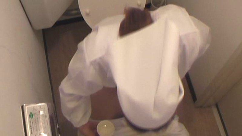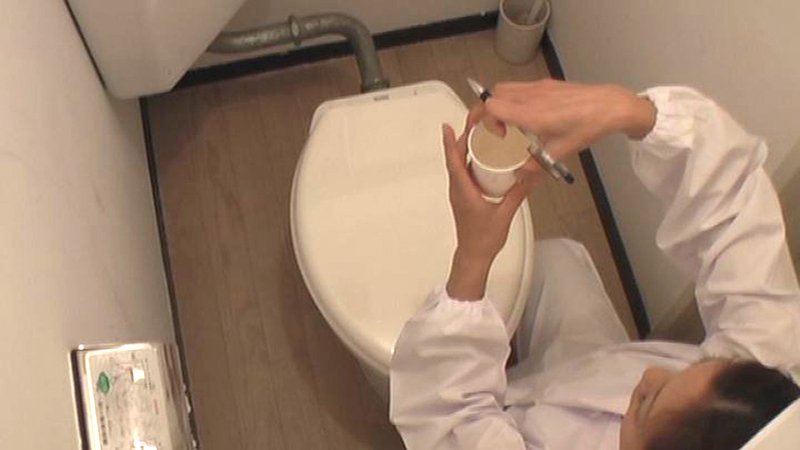 給食センターで働くおばさんのトイレ盗撮 尿検査採取映像