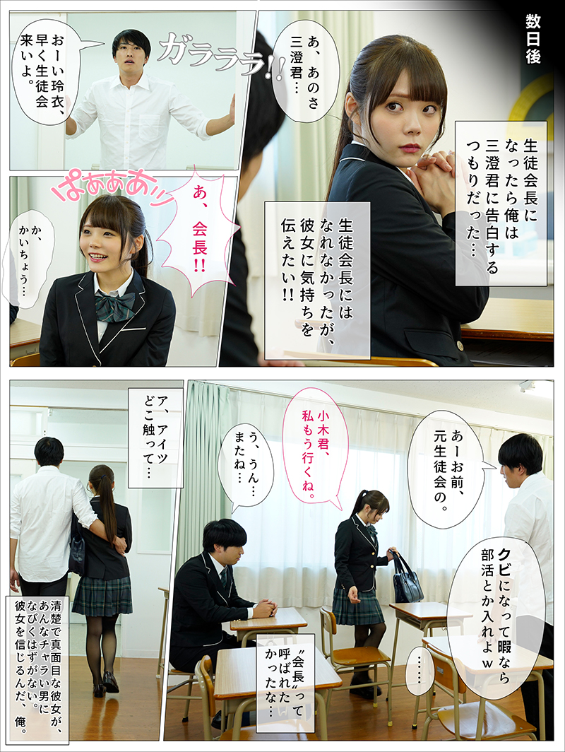 生徒会長になるために俺は生徒会会計として日々努力を重ねてきた。生徒会選挙直前のある日、滑り込みで井上という男子が生徒会長に立候補してきた。俺が弱気になっていると美澄玲衣くんに「しっかりしてください!」と喝を入れられた。彼女は一緒にこの生徒会で共に頑張ってきた仲間だ。そうだ、こんな人望が厚いだけの男に、俺たちの生徒会を渡す訳にはいかない。必ず俺が生徒会長になって、そして美澄くんに告白するんだ!